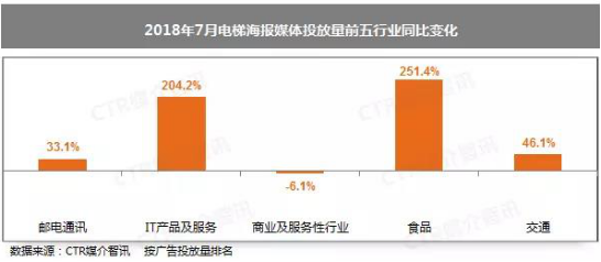 不管是2018年上半年的廣告數(shù)據(jù),還是7月份的單月數(shù)據(jù),電梯廣告都是廣告市場中唯一以行業(yè)形式呈現(xiàn)總體高增長的廣告媒體,同時(shí)也是吸引新品牌入駐最多的媒介類型。